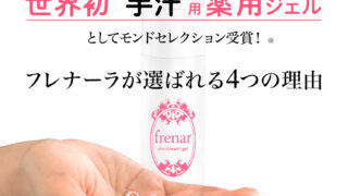【フレナーラ】手汗用制汗ジェルとは?フレナーラは、手のひらの汗に特化した薬用制汗ジェルです。「手汗が気になって人前で緊張してしまう」「書類やスマホが濡れてしまう」「大事な場面で手が滑る」など、日常生活に不便を感じる人のために開発された医薬部...