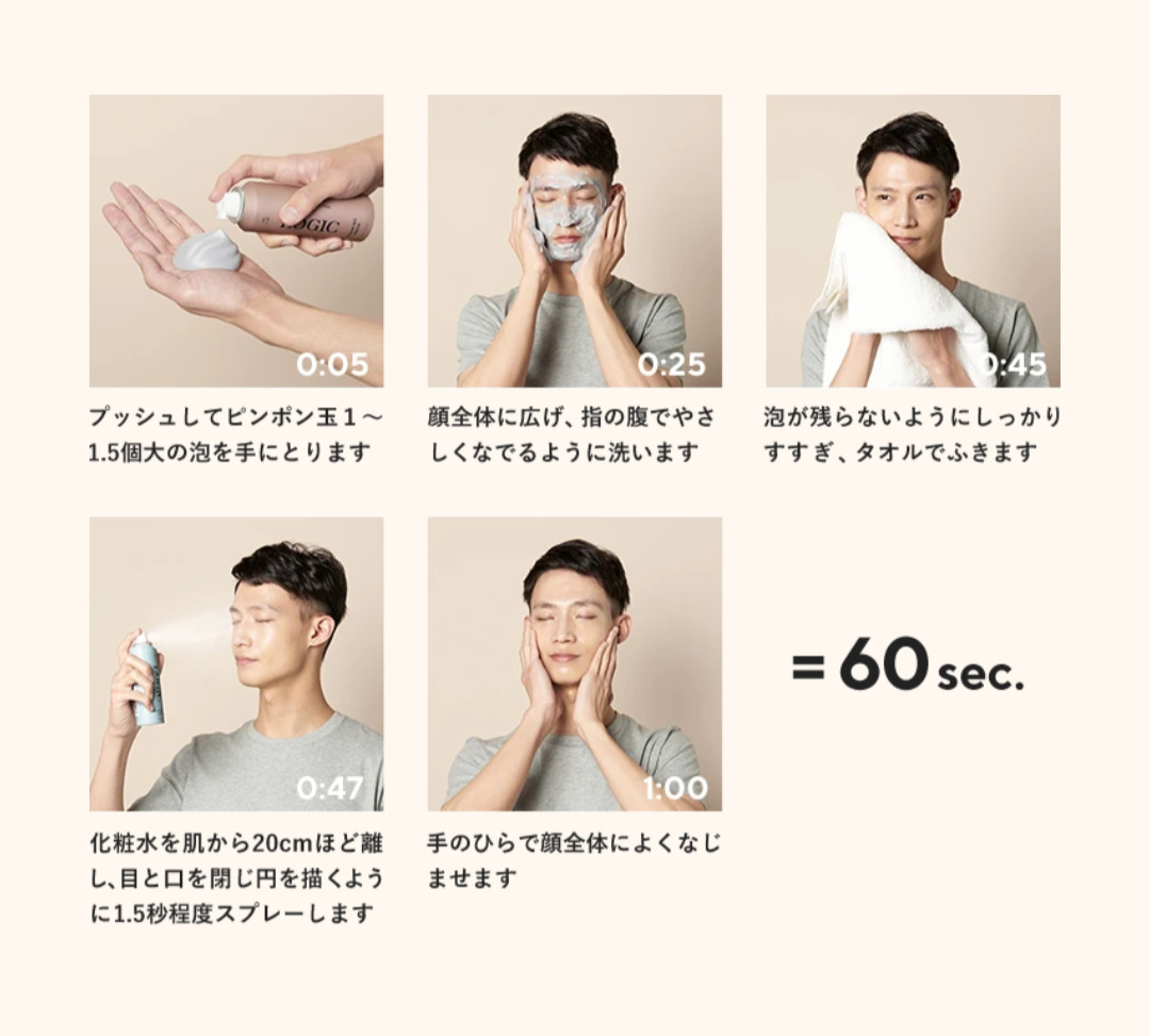 実際にLOGICを使用した人からは「本当に1分で終わるから続けやすい」「泡が濃密で気持ちいい」「ミスト化粧水は肌にすぐ馴染む」といった声が寄せられています。特に「スキンケアを面倒だと感じていたが、LOGICなら苦にならない」という感想が多く、ミニマルケアが生活に自然と溶け込んでいることがわかります。