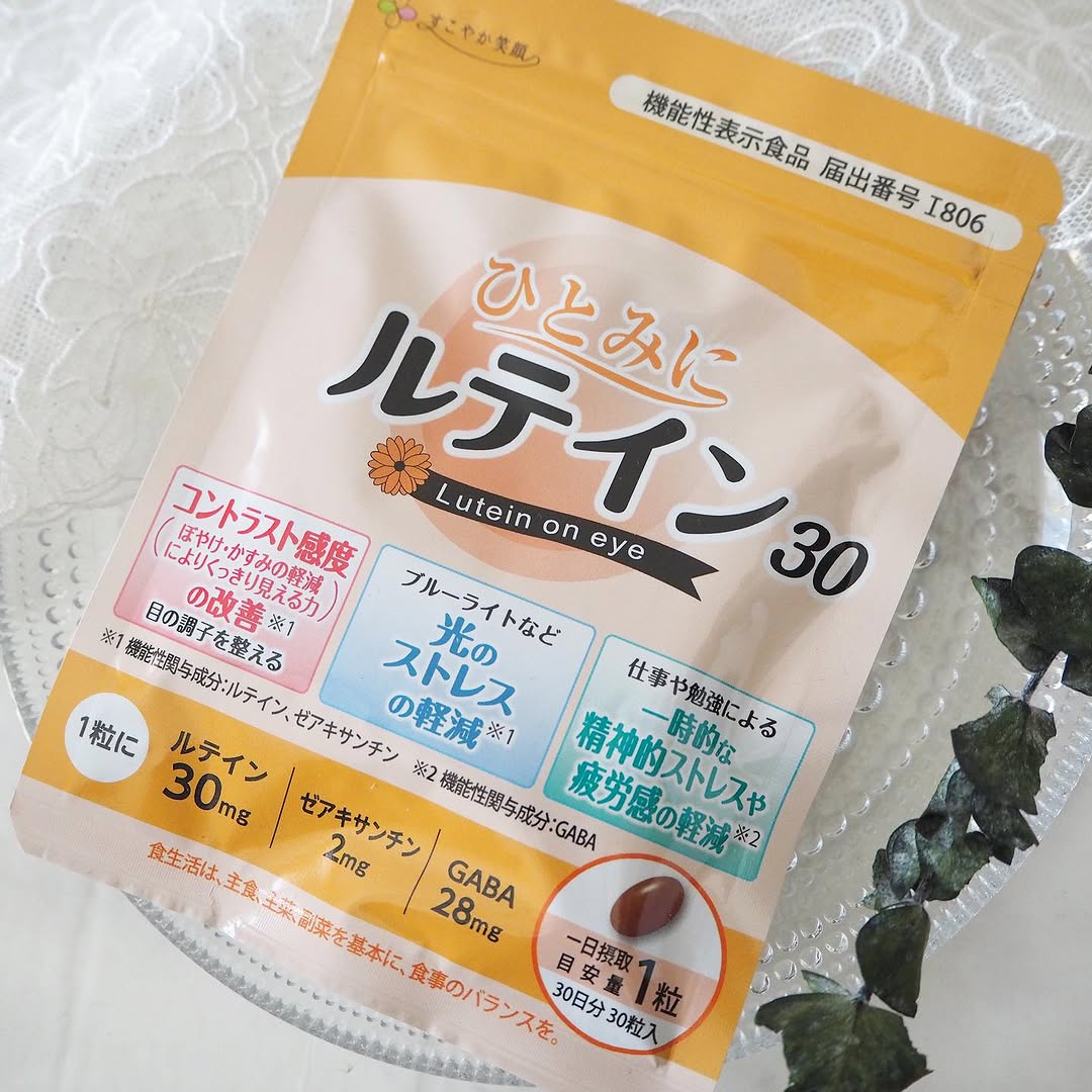 ルテインは、目の黄斑部に多く存在する成分で、光によるダメージから網膜を守る働きがあります。紫外線やブルーライトの影響を受けやすい現代人の目に必要不可欠な栄養素です。「ひとみにルテイン30」では、1日分で十分な量のルテインを摂取できるよう設計されています。