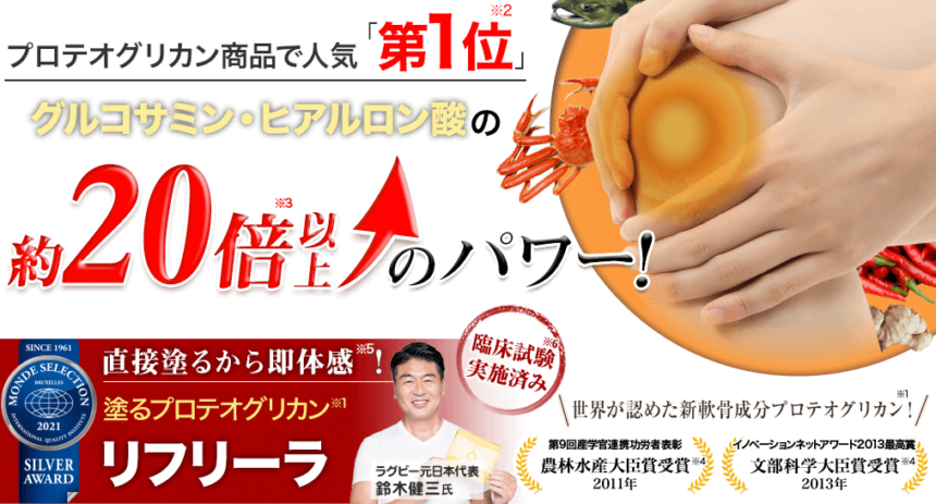 グルコサミンの約20倍以上のパワー!塗るプロテオグリカン【リフリーラ】