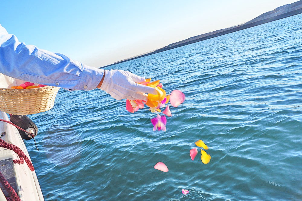 シーセレモニーでは、自然環境への配慮も徹底しています。献花には自然分解される花びらを使用し、骨粉も海洋環境を害さない加工を施しているため、安心して依頼できます。地球と調和するお別れの形として、多くの人に選ばれています。
